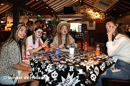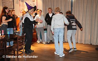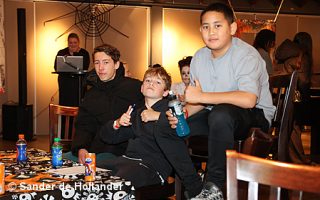 Na aanvang eerst een paar rondes Halloween Pubquiz met allerlei soorten vragen, soms makkelijk, soms moeilijke vragen. Tussendoor even een pauze en draaide DJ’s Valentino en Djemiel de plaatjes aan elkaar. Aan het einde kwamen ook de voetjes op de vloer met links-rechts, de macarena en cowboys & indianen en door enkele werd ook een echte Moonwalk gedemonstreerd. De eerste prijs van de pubquiz was voor het team Tatta’s en de leukst verkleedde was Raissa.